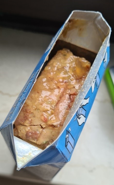 • TetraPak die bessere Verpackungsalternative zur Dose: weniger Müll, besser recylebar und sehr wichtig: kein verkochtes Fleisch am Rand wie bei der Dose